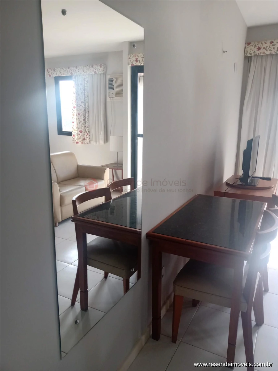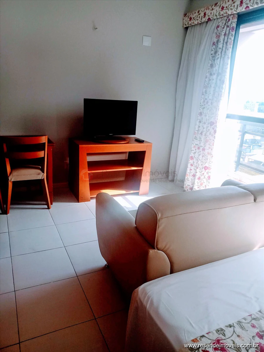 Possuí cama de casal, ar condicionado, cortinas, mesa com 02 cadeiras, rack, televisão, guardarroupa, armário e frigobar na cozinha.