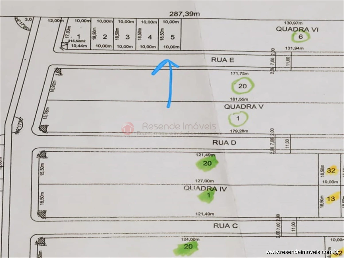 Medindo185 m², sendo 10m frente para a Rua E, e 18,50 de lados.